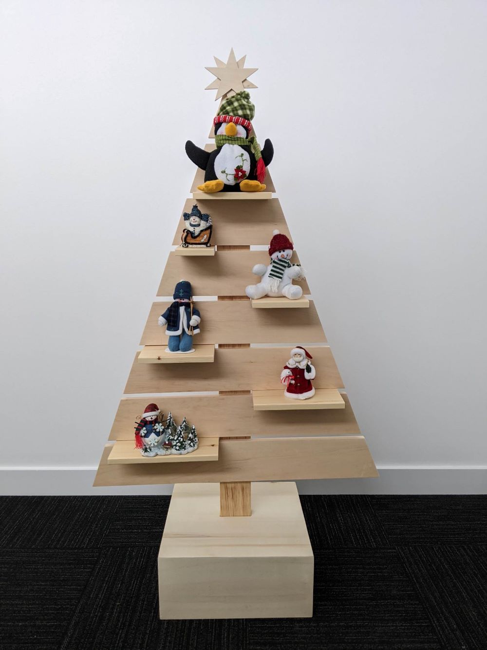 Monté sur une base solide en bois et agrémenté de tablettes amovibles, vous pourrez le décorer à votre goût. L'espace entre chaque planche vous permettra d'y ajouter lumières et guirlandes selon votre imagination.